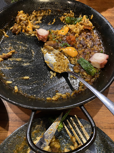 The food was absolutely outstanding. We started with their toast topped with ham, goat cheese, and a delicious tomato jam—each bite was a perfect balance of savory and sweet. The prawn scampi was cooked to perfection, bursting with flavor, and the highlight of the meal was the paella with octopus—rich, perfectly seasoned, and absolutely mouthwatering. Every dish was beautifully presented and full of authentic Spanish flavors.
