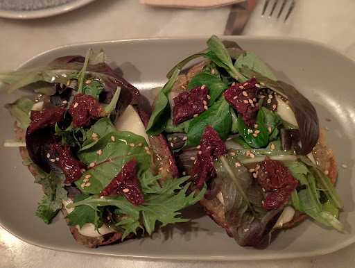 Read moreRestaurante poco convencional. El funcionamiento del mismo es exclusivamente con platos para compartir. Según lo que nos explicaron se debe a que hacen todo al momento y no pueden garantizar sacar todos los platos juntos. Esto condiciona lo que quieres pedir, y a su vez enlentece el servicio ya que va saliendo de a uno. Los platos no vienen servidos como para compartir, por el contrario tocaba dividir y servir nosotros. Si estás de acuerdo con esta metodología, los platos no están mal. Hemos probado: pincho de chorizo criollo, napolitana, provoleta y pastel de papa. Estaba todo bueno, pero creo que debería venir emplatado como para compartir desde cocina (así como lo plantean en carta). Creo que no cuesta mucho filetear la milanesa, poner varios pinchos en lugar de uno o porcionar el pastel. Lo digo a modo de crítica constructiva, ya que con tantos platos no era cómodo estar cortando y sirviendo. O simplemente si a una persona se le antoja un plato en concreto poder pedirlo de manera individual. El producto que ofrecen no está mal, en lo personal no me convenció la metodología. A destacar el tiramisu de dulce de...