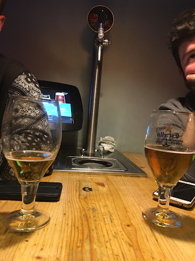 Small bar with a very cool twist. You buy a contactless card (1€ deposit) and charge it up at the bar. After that you can go to any tap, place your card at the wifi symbol and fill up your glass with as much or as little as you want. The price varies between taps but a caña of estrella was around 2€.