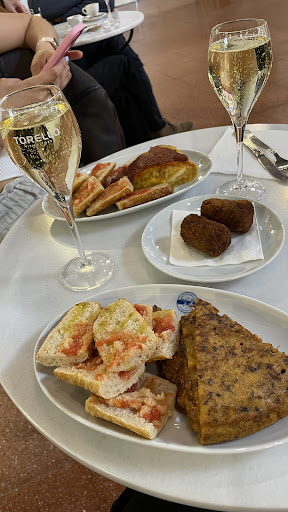 Read moreOne of the best tortilla de papas I’ve tried so far in Barcelona! Tbh I didn’t understand much the ingredients of the 2 tortillas that we ordered but they were sooo good!! Worth the risk 😅. Pan con tomate was also so good. The croquetas were amazing!! And we had a glass of cava that paired really good with the tortillas. It was inside the Galvany Mercat and I was really surprised by how clean the whole place was. Super nice. And you have enough space to grab a table a sit down. Will come back...