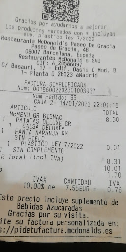 Read moreIt's a McDonald's, obviously not a "new" thing to anyone, but when in Rome (Barcelona) we wanted a quick bite. It was busy but there's plenty of seating downstairs. The food is as always - nothing like the pictures on the screen. I was very disappointed with the size of the burgers. Way too small but very melted cheese (yum). They serve beer, no straws for any drinks. Not sure if that was a run out of stock thing, or they just don't use them. Cheap as always but definitely better off going somewhere else for much tastier experience. Plenty to choose from. Service.... No smiling, no thank you, no would you like extra sauce, just take your food...