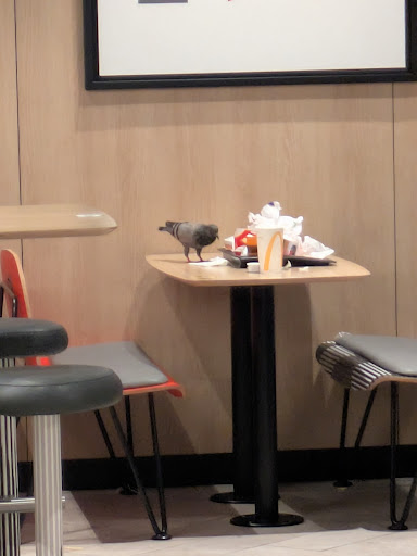 Estábamos comiendo y el local estaba lleno de palomas, las palomas estaban por el suelo, por encima de las mesas, por los bancos... Una asquerosidad total. Lo peor es que luego no limpiaban las mesas y lo vimos porque en la mesa de al lado se subió una paloma y luego vino y se sentó una familia sin que hubieran limpiado la mesa previamente. En el momento de solicitar una hoja de reclamaciones y mientras hablábamos con la trabajadora encargada, esta nos indicó que no podían echar a las palomas "por el bienestar y la seguridad de los animales". Sin embargo, considero que lo que estaba en riesgo era mi propia seguridad e higiene al estar comiendo en una mesa en esas condiciones. Además, el trato recibido fue borde y poco adecuado, justificando la situación con ese argumento en lugar de ofrecer una solución al problema planteado. Todos los trabajadores nos miraron mal por pedir una hoja de reclamaciones. Tratamos de tomar fotografías para poder aportar pruebas gráficas a la reclamación y publicarlas en esta reseña para hacer también una denuncia pública y solo pedimos tomar un par de fotografías sin que nos vieran debido a que si nos veían tomándolas nos obligaban a borrarlas tratándonos de manera muy inadecuada. La encargada nos comentó que no había solución posible para ese problema (cosa que no creo puesto a que debe haber alguna manera de que no entren) y comentaba que no se podía hacer nada para que no entren. Creo que si no hay solución ese restaurante no puede estar abierto. No puede ser que hayan palomas dentro de un restaurante. Es una falta de seguridad e higiene muy seria. No entiendo cómo sigue abierto el restaurante y de no ser que arreglen el problema haré todo lo posible para que cierre. Espero que esta reseña sirva para mucha gente y espero conseguir que gente no vaya a este McDonald's, sobretodo gente con columbofobia, como yo. No espero respuesta del restaurante con esta reseña, yo ya no quiero saber nada de este sitio. Ahora he de ir a la oficina del consumidor a entregar la hoja de reclamaciones, y el establecimiento tiene un mes para solucionar el problema. Dentro de un mes (después de entregar la hoja) volveré al establecimiento a ver si hay palomas dentro o no. Como siga el problema ya tomaré medidas más serias contra el restaurante. Por cierto quiero agradecer a aquellas personas que no vayan al restaurante debido a que han leído...