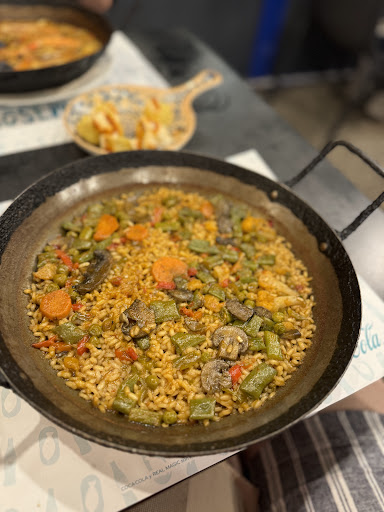 We ordered a paella for dinner, and on the menu, and it said 18 euro, Me and my boyfriend are international students living in Barcelona, and never once have we been to a restaurant where if the menu simply says 18€ that does not mean 18€ per person unless stated before hand by a waiter or on the menu itself. We spoke to them and they insisted that “if two people walk in and order a paella we charge them the bigger portion”. This was NO where stated on the menu, there was not an option to choose paella size, as you can tell by their google photos and online menu. THIS IS A TOURIST SCAM, and although we are international students we have been here for almost 3 years and have never been treated so poorly because of it. The waitress at the begging asked us if we wanted two paellas, we ordered the paella con pollo sin chorrizo (she suggested we get one with and one without) and we very clearly said no, we just want one paella.