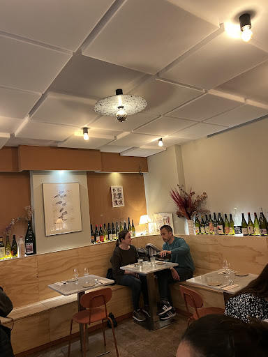 Read moreWas really excited to come here and am extremely disappointed after our meal. Sat on the bar, from the beginning our waitress was moody and unhelpful. Firstly, we were surprised to see the wine prices as they offer multiple bottles that we’ve purchased and enjoyed before from a store a block away at a fraction of the price, so we opted for a glass. Asked about any orange wine that comes by the glass, the waitress didn’t elaborate and just poured what ended being white wine… after asking to try something else that we ended liking, she also failed to pour properly. In one glass, some wax fell in and she continued to pour after noticing and just removed it with a spoon, and the other glass she managed to leave a trail of drops on the counter. As for the food the prawns and mushrooms were good but the mackerel was a disaster, tasted of burnt cooking oil and the plate was covered in oil. We didn’t eat more than two bites and the waitress came to take everything she didn’t ask if we didn’t like it. Overall, won’t be coming back or recommending to anyone. There was not a local in sight (no local would pay these prices) and the food and wine you could easily find better and fairer price anywhere in Barcelona or even in the...