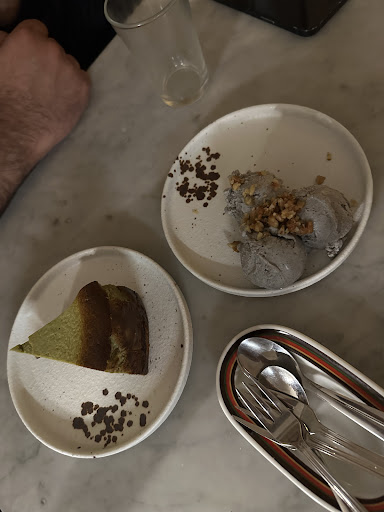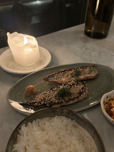 The next point is the service: We ended up, upon recommendation, ordering 5 things and therefore going way beyond our budget for the night (even though we went in already expecting to spend a lot). The timing of the dishes was absolutely off. We received a starter first, everything good so far. Then came the side dish order for my main dish, the side dish for another main dish and later the main dish of my partner. We ended up finishing all side dishes and my partner already ate her main dish until (with all plates already empty), the waitress came with my main dish. No explanation or excuse as to why it came around 30-40 minutes after my partners main dish.
