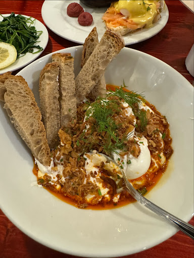 Honestly this place was really “meh” for me. I would have given it a 2 but my husband reckoned 3. The decor was nice, slightly quirky. When we sat down we noticed although busy a lot of the other diners seemed quite glum eating. The servers were all very friendly and quick. I had the Turkish eggs- they were bland, really really bland. I had to ask for hot sauce as I’d initially declined it when first served as it looked like it was going to be packed with flavour. The “chilli” oil on top literally had no taste. Like a vegetable oil or similar, not even the tastiness of a good olive oil. The ratios were all wrong, the eggs were tiny- nowhere near enough garlic and dill for the vast amount of yogurt, it really wasn’t good. The table next to us ordered the same and made the exact same remarks to each other. I couldn’t finish my huge bowl of plain yoghurt. My husband said the eggs royal were fine. Definitely not the best or worst he had had but fine. The iced vanilla coffees were insanely sweet but nice enough. The place is very overpriced for what it’s serving when you compare it to other places in the city centre. The waiter brought the bill and had highlighted the tipping part but we noticed not everyone’s bill had the highlight. We actually found this really rude. Never in my life have I left a restaurant without tipping even places where it’s been really awful food and service. The service at milk had been its redeeming factor so this was disappointing. If it was on everyone’s bill I don’t think I would have been bothered but it didn’t seem to be. Of course we still did tip, but we’re Scottish we always do. Edit: Dear Owner, Of course I noticed these things. How could I not? Instead of making snarky remarks to reviewers would it not be better to take the feedback constructively. It would certainly be more professional.