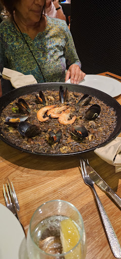 Food: 56€ (following below comment by the owner, the paella is minimum per 2 people and the photo below 5 slices is the portion for 2 people. Indeed it’s 28€ per person but the food is 56€ for two and 5 slices for 2 people!!!) for 5 small slices of duck breast. Never heard of this before even in a Michelin star restaurant. Moreover, the food is not fresh as the sashimi tastes very weird. Wine is cheap (4 euro a glass) but small portion(less than 100ml).