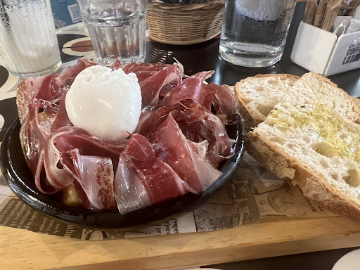 Read moreCute little brunch place with many good reviews. I ordered the eggs on focacchia. It came with potatoes that were delicious and some micro greens. My friend ordered the burrata salad. We were both happy with our meals. The service was fine. The tables are designed to give you bruises on your shins. Pedestal table would be much more comfortable. There are no windows in the dining area, but there is some natural light that comes in from the back door. The ceiling fans are nice and worked well. The restroom was large and spacious. Nice new tile floors. The kitchen is small, as I could see as I passed by. I believe the chef is working hard to keep up with the orders. The guy working at the counter bar checked me out and was nice and friendly.