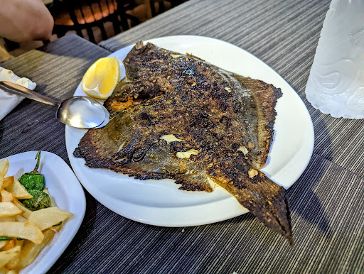 Traditional Spanish seafood dishes, including varied soups & stews, served in a cozy dining room.