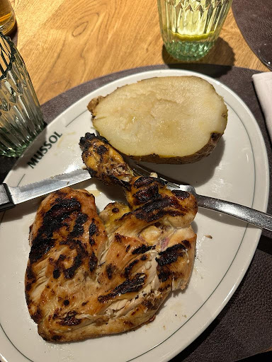 Read moreFood was decent, but a little bland. First time we had to use salt on any food during our trip to Barcelona. I got lamb chops which were excellent! 5 little ribs that were so tender and juicy, no gamey flavor at all. Also got an order of olives which were large, but not amazing. As was the mushrooms with white sausage a tiny pieces of spinach. Had the anchovies over potato chips which were very small and plain. Just 2 strips of anchovies that tasted average from a can. I honestly almost wanted to give them 4 stars, but the service was horrible. We ordered all these dishes and they gave us no plates. except what the food was served on. Took awhile to get the server back over to ask for 3 small plates. She came back with only 1 for our 3 year old. She was gone so fast, couldn't ask for the others, and our child had no silverware. Never asked if we needed anything else, dessert or more drinks. Granted we caught them with an hour and a half to close on a Sunday night. I can say they were some great lamb chops and prices were...