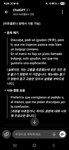 Es un restaurante japonés y pedí un gyudon del menú. Sin embargo, lo que me sirvieron fue un bulgogi coreano. Soy medio coreano y japonés, así que conozco bien la diferencia entre la comida japonesa y la coreana. Sea por intención o por error, le expliqué educadamente al dueño chino que el plato no correspondía al ‘gyudon’ del menú ni a la foto del mismo (adjunté la traducción). Pero el dueño, además de tener problemas de comunicación, lo más grave es que nunca se disculpó y dijo con un tono de que la comida coreana y japonesa no eran tan diferentes. Para comparar el plato servido con lo que aparecía en el menú, tomé una foto. Entonces, el dueño y el chef me exigieron de manera amenazante que mostrara la foto y se enfadaron diciendo frases incomprensibles como ‘China y Japón son diferentes’. Ha sido la peor experiencia gastronómica de mi vida. No volveré jamás y tampoco se lo recomiendo a nadie.