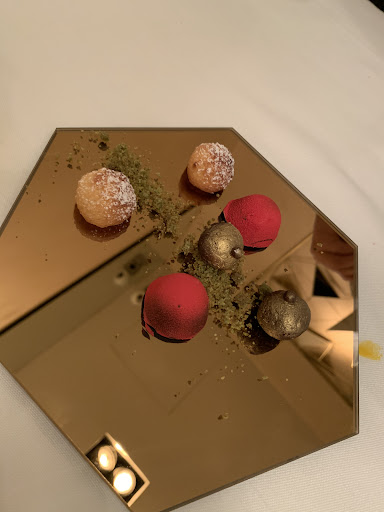 Read moreSeriously , the WORST experience of my life ! This restaurant is the biggest joke ever ! (But a very expensive and sad one) . How come those people have 1 star at Michelin ?? We have eaten there for New Year’s Eve... all courses were below average and some were absolutely uneatable ! My girlfriend and I have spitted back one of my dish : the unbearable canned enchovies rolled in a burnt sauce . This one got me physically sick ! The ‘paté’ of Duck (absolutely not fois gras) was one of the biggest laugh ! It looked like a brown/grey mixture from a 7/11 store associated with pure sugar on top . Absolutely disgusting even for the cheapest restaurant ... the side dish was also burnt black and we couldn’t figure out what it was from the taste ... it was it fact just potatoes ... the Big Mac menue at mc Donald would have been a blessing compare to that awful menu . The only nice things we were about to eat was the caviar ... Unfortunately it was served with metal spoon .... The decoration of the restaurant is pure bad taste , violet and purple walls and ceiling , with small little multi colored cupboards that even my grandmother would have thought outdated ! The service was also bad ... the first 2 courses were explained to us but they stopped right after probably too bored to be there on a New Year’s Eve . Now let’s talk about the saddest part ... all of that would be only a bad memory if the price of that awful evening was not 420 euros for 2 people with no bottles of wine (only 2 glasses of the cheapest one ) . Looking at that unbelievable bill we noticed that they charged us 15 euros for 2 slices of dry bred per person . That Michelin star is the perfect tourist trap and absolutely non understandable! . We know what a Michelin restaurant should be , this one as not even the charm of a cheap kebab place... The chef must have been on holydays that night and was replaced by drunk children ! . We have been totally ripped of and we will never forget that scammy restaurant who should be compare to the notorious Barcelona pick pocket ! Please stay far far far away of that...