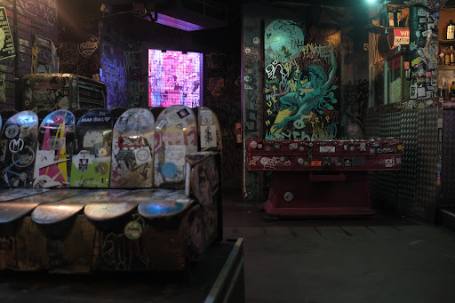 Read moreAfter seeing the reviews we decided to go to this bar. Looked kinda sketchy where it was at but since the reviews were positive we wanted to try it. The designs were cool in all (skateboards/punk style). When we arrived we started looking for drinks. The lady who was bar tending in the night was friendly or so we thought. As we waited she would give us a stare and then continue making drinks for customers who were coming in after us. We were patient but it was obvious she had no intention of making our drinks so we left. The lady seems to dislike foreigners. If you’re a foreigner, tourist I strongly advise you to not...