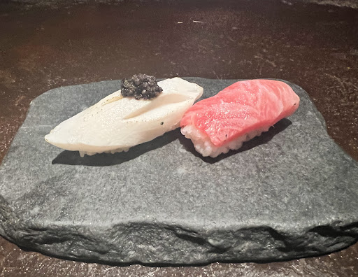 Los NIGUIRI en sus presentaciones fantásticos, sin embargo el de trufa se robó mi corazón... ●BUTTER FISH NIGIRI Nigiri de pez mantequilla con salsa kimuchi y piparras en vinagre BRIE NIGIRI Nigiri de brie flambeado con miel y nueces ●ABURI SALMÓN NIGIRI Nigiri de salmón de Noruega flambeado con mayonesa japonesa, huevas de salmón y cebolla perla ●MAGURO TATAKI NO NIGIRI TRUFA NOSE Nigiri de tataki de atún marinado con soja, salsa crema de trufa negra