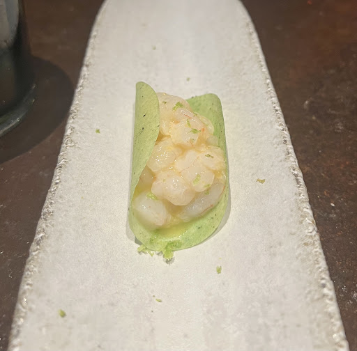 ●SALMON TACO Mini taco de tartar de salmón noruego con mango y huevas de trucha, sobre una oblea artesanal hecha con plancton marino ●MAGURO TACO Mini taco de tartar de atún, hoja de wasabi marinada y shiso, sobre una oblea artesanal hecha con plancton marino