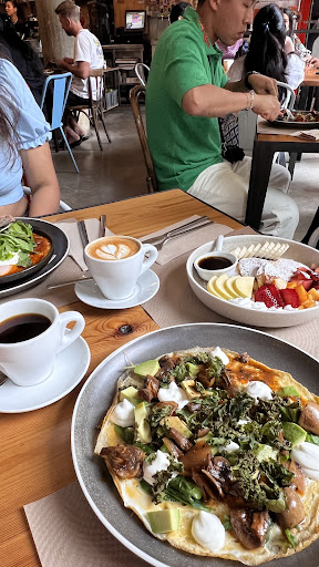 Read moreThe place is located in Eixample, near Hospital Clinic Metro Station. The food is super well prepared in its kitchen, but what we wanted to elucidate here, is the great service they have. Both times we had been there, people were super kind and always had a smile on their face, and for a great coffee experience this makes the whole difference. In this second time we ordered 2 plates of the brunch menu, and 2 tipes of coffee. Fried Bacon eggs, half juicy, half crunchy bacon, sunny side eggs for the first plate, and Scrambled Eggs with mushrooms for the second choice, also veeeeery creamy eggs. For coffee we went with a espresso doble and a flat white. They work with several roasters of Barcelona and Spain, this time we had EL MAGNIFICO. Perfectly balanced acidity and sweetness for the expresso, and the great latte art and ratio of the milk on the flat white. To end up our review, OMA has a great space to work as well if you want, and the decoration inside is super nice. Worth the go!
