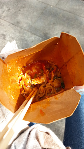 Had their chicken wok with egg noodles and it was delicious except for the chicken. I wasn't a fan of their chicken but that could be just my taste. I would highly recommend it to anyone and will be coming back here. It's cheap, fast, and good. 4.90 for wok and 1.50...