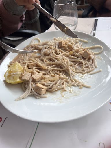 Reseña del 28 de diciembre 2022: Es la primera vez que vamos y, a pesar de que al entrar nos ha gustado mucho el local y teníamos buenas expectativas, salimos bastante decepcionados. La tabla de tres embutidos y un queso que se ofrece como entrante a compartir nos ha gustado mucho, pero la presentación era bastante triste, así como que solo viniera acompañada de dos rebanadas de pan. Como plato principal hemos pedido el fricandó de seitan y dejaba bastante a desear. Para empezar el fricandó en sí era una quinta parte del plato, aunque casi mejor porque estaba chicloso y desaborido. La mitad del plato era una ensalada saladísima formada por un montón de lechuga, algunas rodajas de zanahoria y rábano, tres olivas y tres lonchas de aguacate; el resto del plato era un montoncito de acelgas con pasas, unos trocitos de boniato y una montañita de cereales (creemos que mijo). Nos parece que los 12,50€ que cobran por esto son desmesurados. Pero sin duda lo peor de todo ha sido el servicio recibido por la chica que estaba atendiendo, que era educada y agradable pero no nos ha parecido nada profesional en lo que a su trabajo se refiere. Para empezar nos ha dado menús en los que solo aparecían bebidas calientes/zumos, postres y tostadas. Se lo he ido a comentar y se ha disculpado explicando que era nueva y que aún se lía un poco con dónde están las cosas. Después, a la hora de pedir, le hemos preguntado si las croquetas de la carta eran las mismas que había en el mostrador, y nos ha dicho que no, que eran otras más pequeñas. Le hemos preguntado de qué sabores había y nos ha dicho que sólo de pollo. Hemos decidido pedir dos, como entrante junto con la tabla de embutidos pero nunca llegaron. Unos 10-15 minutos después haber terminado de comer el fricandó, hemos ido a la barra a preguntar por las croquetas, pensando que se habría olvidado de dar la orden a cocina y con la intención de decirle que las cancelara, pero nos ha dicho que sí que se estaban haciendo y que tardaban un poco. Seguido de esto, desde la mesa hemos visto cómo cogía dos croquetas diferentes de la barra y las traía – después de habernos dicho que no eran esas y que solo había una variedad. Las hemos pedido para llevar porque ya no teníamos ganas de comer lo que habíamos pedido como entrante y hemos pedido un tiramisú para postre (no estaba mal pero, de nuevo, el precio nos parece un poco exagerado para lo que era). Sin retirar los platos del fricandó, nos ha traído el tiramisú y dos cucharillas y se ha ido. Cansados ya de estar yendo a la barra, desde la mesa le he pedido que viniera y que si se podía llevar los platos usados. Cabe destacar que cuando hemos llegado dentro solo había una mesa ocupada por 2 personas que se han ido al poco de entrar nosotros (dejando además la mitad de los platos), por lo que tampoco está la excusa de que tuviera que atender a mucha gente. También, a la hora de pagar hemos visto en la barra que el precio de una croqueta eran 1,95€ pero que si cogías dos se quedaba en 3,5€, sin embargo después al revisar la cuenta hemos visto que nos han cobrado 3,9€, sin el descuento por llevar dos. También nos ha sorprendido mucho que nos hayan cobrado 2€ por una botellita de agua “filtrada”, cuando está decretado por ley que debe ofrecerse agua del grifo sin coste alguno -por muy filtrada que esté- y, en todo caso, deberían de habernos comentado que se cobra a la hora de pedir o haber traído una botella de agua mineral. Me da mucha pena porque siendo veganos, nos gusta probar sitios nuevos y apoyar locales independientes, pero basándome en la experiencia de hoy, ni volvería ni lo...