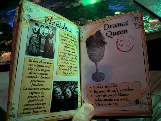 Once inside El Vagón, it is indeed a rather interesting experience with a very original decoration and treatment. The cocktails are offered with a curious method (The Book of Forgotten Jobs) and are quite good (some are very successful combinations). All while we are sitting in a small armchair of the Orient Express and we see through a video how the train advances. There is also the possibility of ordering something to eat (ham or cheese) while enjoying our drink. That said, we have a maximum of 1 hour of enjoyment, after which we are invited to leave the premises, which barely gives us time to finish a cocktail and something to eat calmly; we didn't order a second drink because we were going to have to hurry.