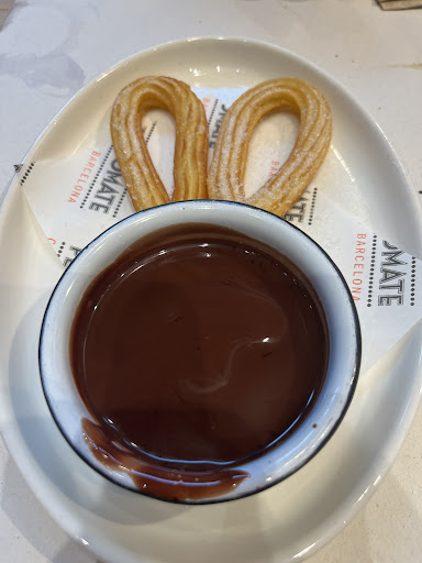 Catalan Paella - Excellent choice and perfect to share for 2. Olives - The in-house olives were amazing! Such a nice variety and every bite was delicious. Spinach Fritter - The spinach fritter was to die for. Their honey & aioli sauce mixed with the crispiness of the fritter was pure art. Mussels Marinara - Excellent starter before the paella. Again perfect sizing for 2. Tomato Bread - Can never go wrong with tomato bread. Sangria - The Sangria was excellent! Super refreshing and we regretted not getting the pitcher. Chocolate Churros - No words can describe how delicious and fresh they were. Definitely recommend Atmosphere/Service - The atmosphere was super fun! They had some pop hits playing and the servers were all singing and having fun. The whole restaurant (including customers) started singing Living On a Prayer when it came on! It was also very nice to be inside la Boqueria and we went around 8pm meaning the market was closed which made the place very relaxed and secluded from the craziness of La Rambla. The service was quick and they were very attentive to any extra plates and always asking on if we wanted anything else!