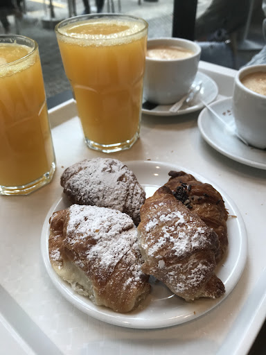 Read moreThis place is pretty crowded during Saturday mornings. It’s comfortable and nice inside. The orange 🍊 juice 🥤 it’s super fresh, but the coffee ☕️ is not good at all. Croissants are good 😌. Attention is not very good. Everyone is rushing and asking loudly if you want cold or warm milk 🥛. When they’re changing coffee from coffee machine they’re hitting very hard and at some point you can’t talk. Price is regular. We’ve payed EUR 10 for two coffees, two orange juice and two small croissant 🥐 We’d love if you visit our profile in Instagram to see experiences all over the world! Have an amazing day! Follow and enjoy.