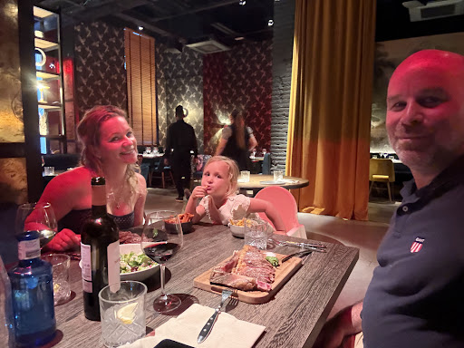 Excellent!! I attended on 28/8 as a solo diner and was blown away! I was given a warm welcome by the team before being escorted to my table where I was served by Andrea who was great for the duration of my visit. The vibe in this place is awesome. This is one of the coolest steak houses I've ever been to. The lighting was brilliant and had an intimate but not too serious feel. This was all sound tracked by some great deep house tracks which was just what I wanted to hear. I don't think I've ever been to a steakhouse where they're playing proper deep house music, for me this really elevated the experience. I must say the food was amazing! I started with the Oxtail croquetas which were sublime, cooked to perfection and really bursting with intense flavour. This is a must-try dish when you visit, trust me, you will want more, 3 we're not enough lol! On to the main event, I ordered the Tenderloin meduim-rare and it arrived exactly to order. Really flavourful and tender, cooked to perfection. I really didn't want it to finish. With the steak I ordered the potatoes with parmesan and pesto, these were out of this world! Omg, I could happily eat these all day long, wow. I also ordered the grilled veg salad which was also incredible! So many amazing flavours, everything just complimented each other perfectly. I'd go far as saying this was one of the best dinners I had during my stay in Barna. I had to have a glass of red and a Barcelona Mule which were lovely. Dessert was a warm chocolate coulant which was heavenly! This was served with ice cream and was amazing!! Final words, this is an amazing steak house, the team are doing a fantastic job and this is an essential stop during your time in this...