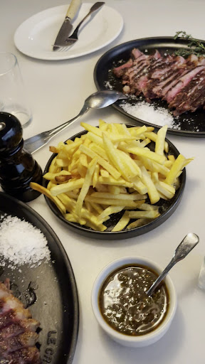 The stars of the night were undoubtedly the center cut steaks, with both the Procedencia Alemania / Países Bajos and Procedencia Galicia variants cooked to perfection and bursting with flavors that only true craftsmanship can achieve. The sides were a culinary adventure in themselves: Patatas fritas and Patata graten, puerro y gruyere - the latter being an exquisite blend of grated potatoes with melted gruyere cheese that was simply amazing. The huevos, parmentier de patata y trufa offered a unique taste, though a note for next time might be to request the eggs a bit more cooked to personal preference.