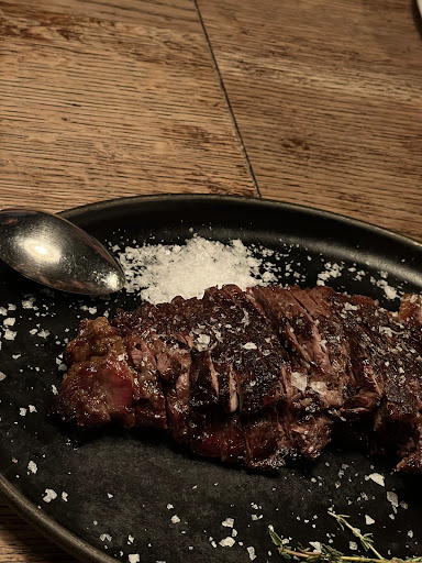 We ordered steak, which was cooked to the requested doneness and tasted good. However, the meat was slightly tough. It was still a good piece of meat overall, but not as tender as expected. The potatoes on the side were extremely salty. I usually enjoy salty food, but in this case, it was too much even for me.