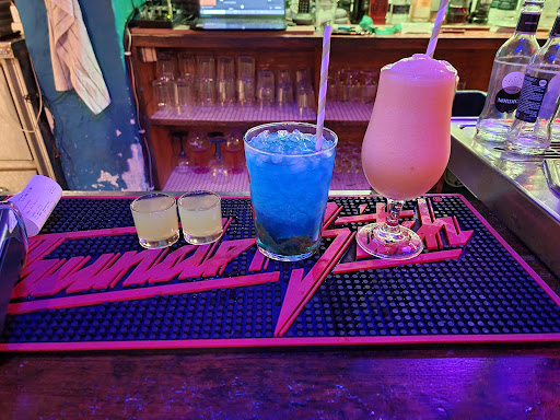 Cool bar decorated with vintage film posters & memorabilia, serving up creative house cocktails.
