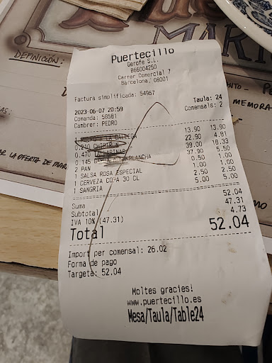 Read moreWhen we started to order, the first sentence I said to the staff member was "We have no idea (abt how to order)" as it was our first time dining in this restaurant. The staff member recommended a few seafoods including octopus. Because we already had octopus for lunch today, we asked "can we have a small one" and the staff member rapidly grabbed the smallest piece of octopus for us. I only learned each piece of octopus had the same unit price of 13.9 euro after I paid and saw the bill. The whole thing did not make sense because the sizes of the octupus vary so much - our piece was literally the smallest in the pile and it was around 1/3 of the other normal sized ones.