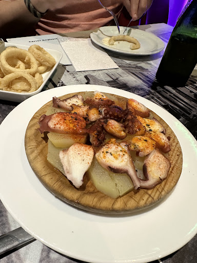 Yep, gorgeous square, ideal if you're with kids and all. But, they're taking the piss. We went on a Saturday evening, after a huge lunch, four adults three kids. Got a table outside. When the kids went for a walk round the plaza, they took their table and chairs away saying they needed them for other customers- there weren't any... It started raining. Kids came back. We ended up one on top of the other, trying to fit round a small table- no reaction from the waiters. We ordered crisps and a few tapas- food was OK, nothing wow either. The kids had just water. One of us, designated driver, was drinking cola. One had 3 glasses of red wine and the other two, we had beer. The bill: 170€. When I tried to talk to the waiter, especially for the 13!!! bottles of Alambra beer he charged us, (I was the only one having that beer and I'm still standing), he wouldn't have any of it. I asked to talk to the manager, he told me he was the manager and that's that. I paid the effing bill of course but I'm never going back. So, my recommendation for this place? Go to the...