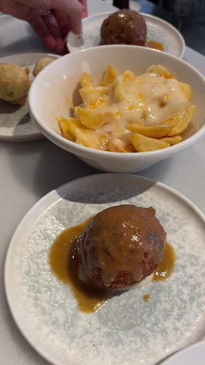 There was no seat in the seating area, hence why we were seated at the bar. The host propose us to seat there to see what’s happening in the bar. The other staff then asked us what’s to order. We didn’t take any wine as we were not able to drink alcohol at that time. When she proposed we said no thank you we will take just water. Another 5 minutes she again proposed us “why don’t you take this type of wine etc etc” and we had to say “sorry we don’t drink alcohol”. Patatas bravas arrived , perfectly cooked and very tasty. The staff then showing us best seller food, as maybe she thinks we didn’t order enough. We said “ah I c, thank you” as we thought it was just showing. When we tried to order another thing the staff said “your plate is on the way, the oxtails”, little did we know she ordered us that without confirming 😅 we then said “we didn’t order this, we just said thank you for showing us”. The food is very good (the hot ones), the cold food was just okay. This institution seems old and we wanted to try the tapas experience. But the staff is a bit into forcing attitudes. Don’t get me wrong, they’re really nice but a bit forcing. We saw the staff tasted the tiramisu with bare hands in front of us, which for us is not good, made me didn’t want to...