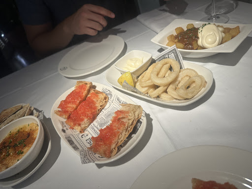 The restaurant is beautiful and classy. I stopped here after a long day of walking for some tapas. Our server, Aric, was very attentive and helpful as we ordered and enjoyed our meal. He went out of his way to ask how our meal was and continued to ask if we needed anything. We ordered the hummus, crispy bread with tomato, fried squid, and patatas bravas. The hummus was seasoned well and the bread had its own seasoning. I don’t usually enjoy hummus, but I actually liked this one. The bread was very refreshing, as it has fresh tomato spread on it. It is very good to have when you have a few dishes with strong flavors because it acts as a palate cleanser. The fried squid had a VERY thin batter, which I am not used to, however it tasted very fresh. They were larger rings of squid than I have ever gotten and were not chewy or fishy. It came with an aioli that added some salt to the squid which I enjoyed, but I did miss the red sauce I would usually have with calamari. Regardless, it tasted amazing. The patatas bravas were absolutely amazing. The bravas sauce has an almost curry like flavor and mixed very well with the aioli. The potatoes themselves were cooked very well, soft on the inside with some crisp on the outside. For drinks, we got the sangria, which I believe they made to order. Personally, I was not a huge fan, but I do not like wine as it is, so I prefer a very sweet sangria. If you are a wine lover and prefer a sangria that retains the wine flavor, I would recommend it. Overall, I was happy with the experience. Our server, Aric, was amazing at quickly taking our order and getting our food to us quickly. He even made sure to check that we were done with our food (we were so full we couldn’t finish) prior to taking it away. The price was amazing for the serving size and the flavors. I would definitely...