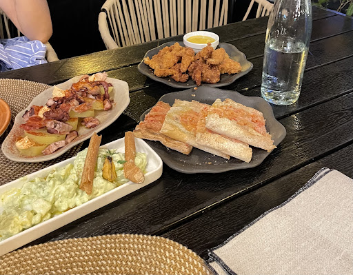 Very bad dining experience. We ate tapas at this restaurant, first of all the prices on the menu were way above the average tapas prices in Barcelona, but we as tourists didn't really mind otherwise we would have left the restaurant before ordering. All the food was served very quickly and as seen by the picture the tapas portions were pitifully small compared to the prices on its menu. The garlic shrimp and cuttlefish potato salad was tasty, the fried chicken strips were awful, basically just very thick flour and oddly seasoned chicken, but probably just it didn’t match my personal taste. The most unpleasant part was that the prices on the bill did not match the menu. The pricing, which was already too high on the menu, became even more implausibly high on the final bill (we paid 75 for the things in the pictures along with 6 shrimps that are not showing in it). We asked the waiter about this, and his sequence of opening the menu and flipping to the undetectable "15%" extra charge in the corner was overly skillful. When I said you should remind your guests before they are seated, he ignored me even more skillfully with a fake closure greeting and left. If you look closely at Google Review you will see that they had the same scam a year earlier and they did not adjust their pricing as they replied. All in all, I’m not saying the price too high is a problem, but is that the hidden scam and the attitude that takes the tourists as fool is unpleasant. With that you’ll not have return...