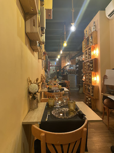 Un lloc molt bonic, intrigant, baixes unes escales a un mig-sotan. La sala, allargada, cuidat al detall, toc femení, toc dissenyador d'interiors..acollidor.