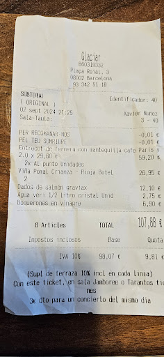 Read moreGlaciar restaurant, located at Plaça Reial in Barcelona, offers a delightful culinary experience that combines traditional Catalan cuisine with a touch of French influence. Stepping into this establishment feels like entering a time capsule, with its rustic and tranquil atmosphere reminiscent of the early 20th century. Our waitress, CRISTIAN, provided exceptional service, delivering attentive and knowledgeable assistance throughout our visit.