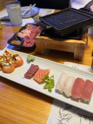 Notably, little of the sushi strays beyond salmon and shrimp (cheaper fish). The takoyaki has LOTS of batter and little octopus. Ditto xiaolongbao. But it's not all bad. The salt and pepper shrimp is excellent. The grilled meat is small in portions, but it's tasty and neat to grill yourself. Shrimp skewers weren't impressive. And the decor was all over the place.