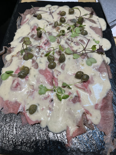 Read moreI wasn’t going to leave any review, because frankly speaking the food looks fancy, but the taste is a bit behind. But! I decided to leave a comment about the care and treatment I got from the staff. I ordered a grilled calamari, but being vegan could not eat half of it (my fault completely, wanted to try something special and chose badly), and explained it to the server so that the chef wouldn’t feel bad for it. Later the chef decided to send me a vegetarian appetiser on the house and I must say it was marvellous: croquetas de escalivada is a must-have. And also, we loved the local version of the typical Catalan dessert “el music”, which normally consists of nuts and sweet moscatel wine, but in this case was a combination of cream, nuts, crunchy base and the most fascinating part - brandy foam peaks, which I can’t even imagine how they achieved. My applause. Thanks for this...