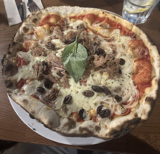 Another issue was the toppings. As you can see, most of them were concentrated in the center, leaving the edges rather bare. This made the pizza feel unbalanced. On top of that, the middle was very wet, which made it difficult to eat without collapsing. I suspect this came from the tuna releasing moisture and the briny olives adding extra liquid on top of the tomato base. A little more care with distribution and draining would go a long way.