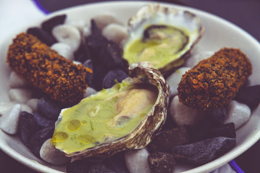 OSTRA CON GAZPACHO DE TOMATE VERDE Y JALAPENOS On attendait avec les jalapenos, quelque chose d'un peu relevé, ce n'était pas mauvais mais cela manquait un peu de puissance.