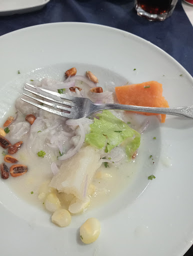 Pedi 1 menú y platos fuera de carta, el ceviche estaba tibio no se si por que el plato q usaron estaba caliente o alguno de los ingredientes que usaron calentó el resto del plato, el aji de gallina con arroz normal, nada impresionante que es lo q medio salvo el almuerzo, la jalea de marisco: todo el pescado y marisco tenia un sabor raro , no de mal estado que se detecta rápido seria sabor como amoniaco, no esto NO estaba en mal estado, pero alguno de los ingredientes del rebozado o el aliño era algo diferente, en mi caso no agradable, hubiera quedado mejor con un rebozado congelado que eso que me sirvieron, el agua de fresa del menú era agua con azúcar morena, la fresa no apareció por ningún lado, y de postre no me preguntaron que quería y trajeron 2 profiteroles descongelado. El café bien. Definitivamente todo muy mejorable. Si regreso tendré q preguntar por su plato fuerte o estrella , el q más se vende porque por lo que comi hoy no regresaría. Pare allí porque tenia visita en el vall de hebron y era el peruano que...