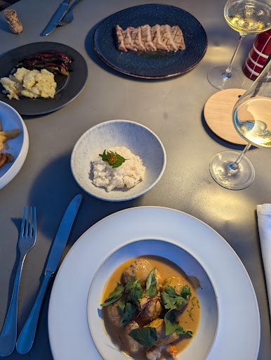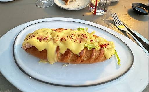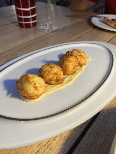 We ordered: Bikini Croquetas 🔝 Salmorejo tasted not home made but rather industrial. Lobster Roll with almost no lobster served in a huge brioche with lots of sauce a bit too rich and with no sides so we ordered fries that were frozen fries. Fish canelones that again were ok not great. Lemon fish sashimi which took forever but when they eventually brought it, was nice in fact the nicest of the things we ordered. Bread that they served and charged at €3 the piece was good too. Wine selection also good.