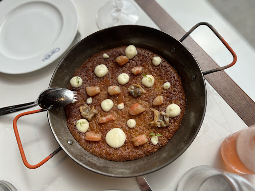 The interior is absolutely beautiful—thoughtfully designed and atmospheric, creating the perfect vibe for an enjoyable evening. The food didn’t disappoint either. We loved the octopus brioche (a real highlight!), and the tomato salad was fresh and full of flavour. The prawn rice was tasty as well, though slightly on the oily side for our preference.