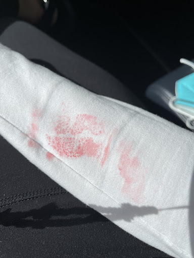 I leave, and was not going to leave a bad review. But then, I look down after I leave, and my shirt is completely ruined by the red ink of the takeaway coffee cup given to me. See photo.