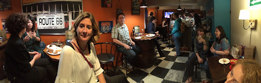 Bar, Restaurante, Pub Ruta 66. Situado en la calle Socrates 68, en el barrio de Sant Andreu del Palomar. Este local, esta ambientado en la famosa Ruta 66 de los Estados Unidos, pero con su rollo que lo hace único. Solo entrar te encuentras con un expositor de Pinchos.... eso ya lo hace diferente no creéis... Muy importante tienen salvaescaleras para gente con movilidad reducida. Punto positivo ✅️ La parte de arriba es más tipo tasca, pero conservando la estética de los EEUU. La segunda planta es más Pub sin dejar la estética de la Ruta 66, allí es donde encontraremos el billar, el futbolin,el pinball y la máquina de dardos. Hemos pedido 1 cerveza, una Corona y un cocktail. Por ser la primera vez que el camarero ha echo una margarita.... muy bien 👍 👏. Tanto el camarero como la camarera y como el jefe, super buen rollo. La única pega es el precio de los cockteles todos 9.50€ wuauuuu. Por ese precio podrían poner algo de picar. Resumiendo recomendaría Ruta 66 de Sant Andreu..... Sí claro...
