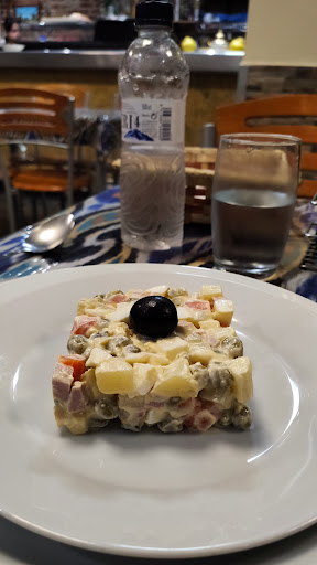 We came to visit after craving to trying some unique cuisine we hadn't tried before, and we're lured by some of the more positive reviews, as well as the available menu in their website. When we arrived, the restaurant was empty, like, ghost-town empty. Surprise number two was the actual food selection; apparently, it seems as if they may have had a bigger and more exciting selection of dishes in the past, because during our visit their menu had been reduced to a really minimal amount of choices - basically you can't order "a la carte", but need to order as a Menu, which consists of 4 types of salad (2 of them not vegetarian), and 3 choices of main (none of which are vegetarian). My partner is vegetarian and had a hard time being able to choose a main, which they somehow accommodated by taking the plov option and removing the meat. Then as the last you can choose dessert, coffee or tea, but their desserts (the homemade ones) are not included in the menu, so you just get supermarket flan or supermarket pudding. In all honesty, and while the food wasn't bad, I did not think it was worth the 16.50€ price for the menu, even if it included the drink. My partner, which had to settle for the meatless plov, did only the get the side dishes for it, nothing extra as veggies or protein to make up for the lack of meat, and still also was charged full price. Truthfully, and as sad as it may be (in my opinion, some items in the menu have a lot of potential, if priced accordingly), I believe we won't be...
