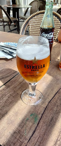 $3 pints!!!!! Our second day in Barcelona we went out walking, looking at menus and hoping to find a great lunch. We saw this place. We checked out the menu. It had some tapas that we were familiar with as well as some great sounding dishes. It also had a handsome waiter which truth be told might be why Precious wanted to check it out. We had some patatas bravas which are awesome anywhere you get them. Precious got a salad, and we got a Catalan dessert which was kind of like a pudding with a very powerful taste. During our five days in Barcelona we stopped by this place two more times, and I ordered plenty of cervezas. They have plenty of sidewalk tables that are found on almost every street in Catalunya. But Precious is very sensitive to cigarette smoke so they also have about a dozen plus tables inside. The wait staff are pleasant. A great place to kick back, have some tapas and drinks and talk...