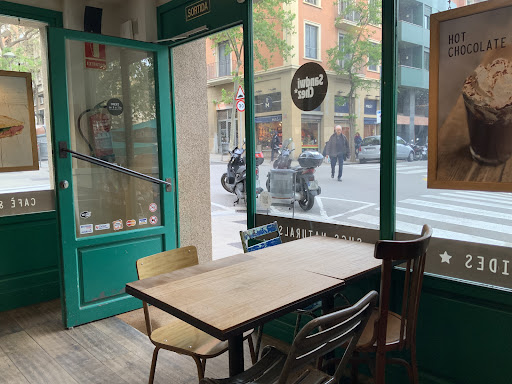 Sandwichez has great quality food and beverage distributed across Barcelona. Every Sandwichez’s cafeteria has free WiFi and a cozy atmosphere. This one, the one in Maria Cristina, has big windows that let natural light in. You can work here with your laptop, study with uni classmates, eat in your lunch break or drink a coffee with friends; in any case you’ll feel confortable. Food is mostly limited to different and tasty sandwiches and salads. You can ask for non dairy milk plus the general price...