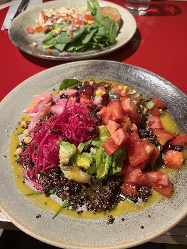 We stayed near this mall and noticed a healthy dining option here. We were still getting over jet lag so didn’t have a huge appetite and wanted something light. This place was perfect. Lots of different options and pairings. The dining area was super cute too. Would definitely come back for quick healthy meals. When we got there at 6pm they were out of salmon and falafel already so we tried the chicken. It was surprisingly actually pretty good. Still juicy and it was pretty flavourful. The avocado quinoa bowl was really good...