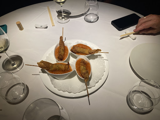 Read moreMe habría encantado que me gustara, pero no puedo evitar pensar que definitivamente hay un margen de beneficio muy grande entre la calidad del producto y el precio. Se pidieron varios platos del menú degustación, y lo más sabroso fueron la berenjena y el salteado de judias con pollo. Los dumplings estaban bien, sin más, pero la masa era gruesa y al relleno le faltaba ese punto de sabor y jugosidad que hace que las empanadas chinas se te deshagan en la boca. Los fideos tienen buenísima fama, pero no podía evitar compararlos con unos spaguetis, que no están mal, pero no eran ni fideos finos ni tipo udon, eran spaguetis con verduras salteadas, un huevo y un poco de trufa. El pato Pekin (plato estrella), fue cortado un poco sin orden, que puede que sea su encanto, pero hacía que algunos trozos estuvieran mas secos que otros, no era un pato que puedas destacar por su textura, creo que lo mejor que tiene el plato es el montar las obleas y cuando el relleno es un animal tan delicioso, es una pena que ese sea su punto fuerte. Y por último, los rollitos de platano con chocolate, que lo mismo que el resto de platos, no hay queja en cuanto a que no fuera decente, pero son 12€ por 4 bocados que no merecen la pena. En definitiva, el lugar está vendiendo un lujo y una experiencia que es incapaz de equiparar con la calidad de sus platos, creo que es un restaurante que si buscara la mejora, podría merecer la pena el coste, pero hasta entonces y viendo que tiene tanta fama, dudo que lo quieran...